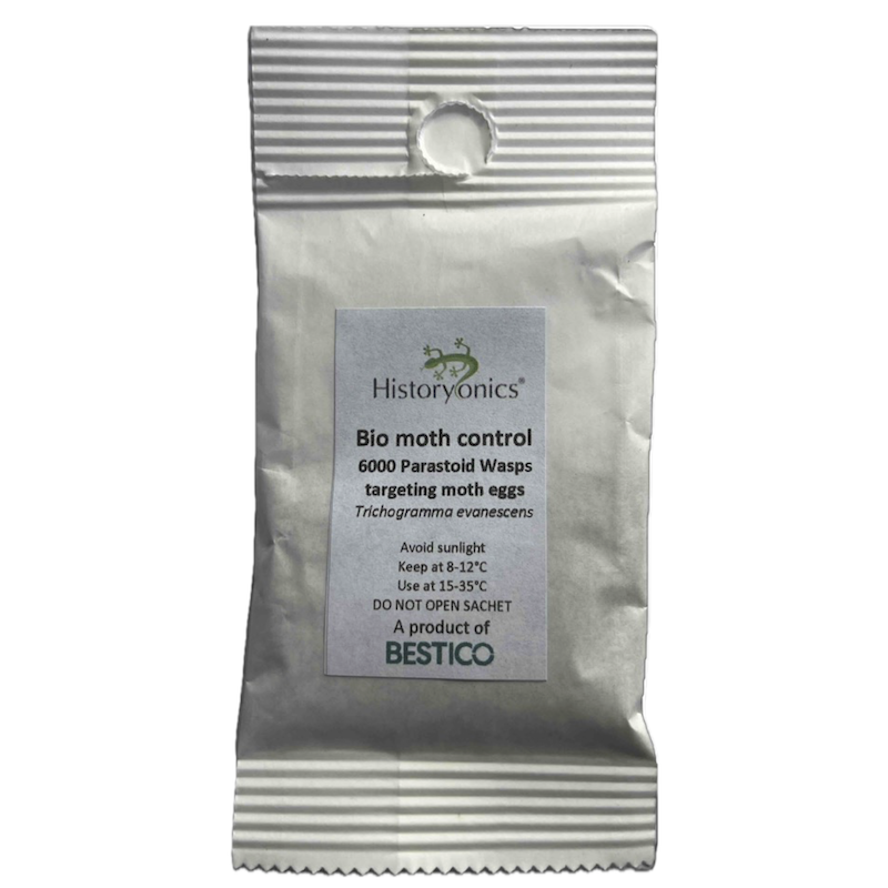 Each sachet contains 6000 pupae of the tiny parasitoid moth: Trichogramma evanescens, a UK native species. The wasps are truly minute, almost invisible to the naked eye.