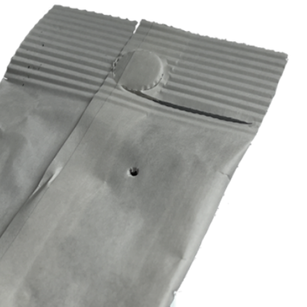 The sachets have an exit hole on the front and back.